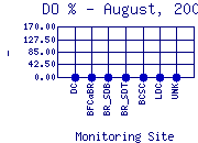 The above map indicates water quality monitoring sites. To view data at a specific site select it from the map with the mouse.