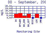 The above map indicates water quality monitoring sites. To view data at a specific site select it from the map with the mouse.