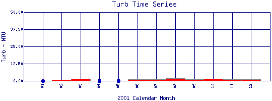 Turbidity Time Series for 2001 Silver Lake Pipe outfall in Lakewood Reservoir |