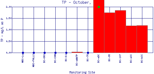 The above map indicates water quality monitoring sites. To view data at a specific site select it from the map with the mouse.
