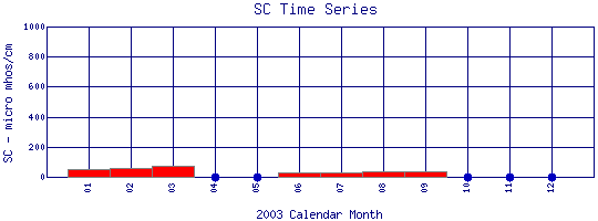 Specific Conductance Time Series for 2003 Middle Boulder Creek at PSCo Weir |