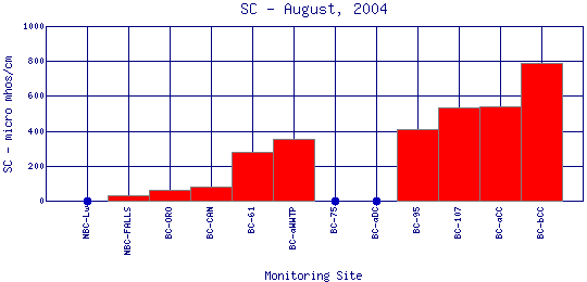 Longitudinal Specific Conductance Profiles for August, 2004