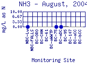 The above map indicates water quality monitoring sites. To view data at a specific site select it from the map with the mouse.