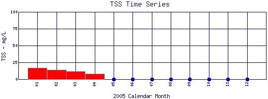 Total Suspended Solids Time Series for 2005 Boulder Creek at 107th St |