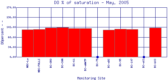 Longitudinal DO Percent of Saturation Profiles for May, 2005