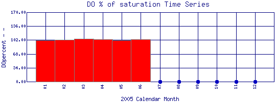 DO Percent of Saturation Time Series for 2005 Middle Boulder Creek at PSCo Weir |