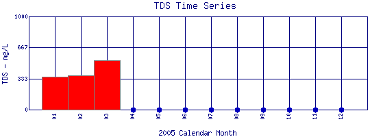 Total Dissolved Solids Time Series for 2005 Boulder Creek above Dry Creek |