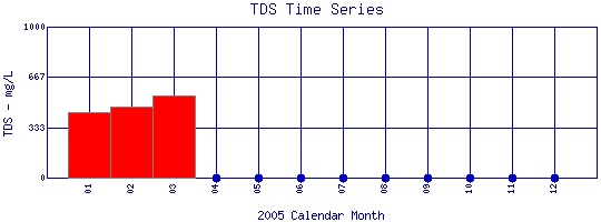 Total Dissolved Solids Time Series for 2005 Boulder Creek Below Coal Creek |