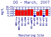 The above map indicates water quality monitoring sites. To view data at a specific site select it from the map with the mouse.