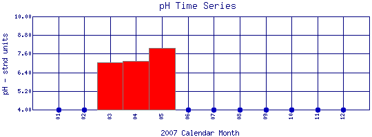 pH Time Series for 2007 Boulder Creek at Orodell |