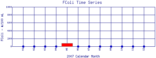 Fecal Coliform Time Series for 2007 Boulder Creek above Dry Creek |