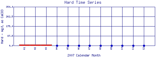 Total Hardness Time Series for 2007 Silver Lake Pipe outfall in Lakewood Reservoir |