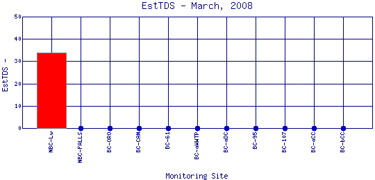 The above map indicates water quality monitoring sites. To view data at a specific site select it from the map with the mouse.