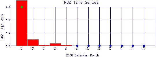 Nitrite Time Series for 2008 Boulder Creek Above Coal Creek |