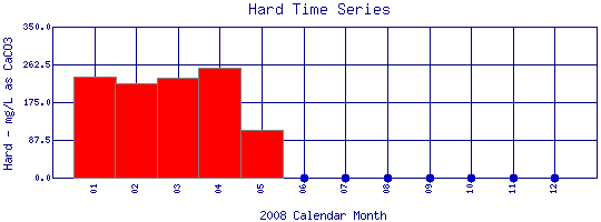 Total Hardness Time Series for 2008 Boulder Creek Below Coal Creek |
