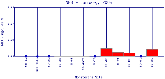 The above map indicates water quality monitoring sites. To view data at a specific site select it from the map with the mouse.