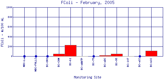 Longitudinal Fecal Coliform Profiles for February, 2005