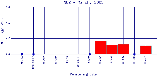 The above map indicates water quality monitoring sites. To view data at a specific site select it from the map with the mouse.