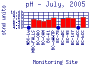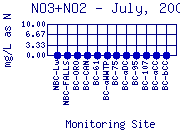 The above map indicates water quality monitoring sites. To view data at a specific site select it from the map with the mouse.