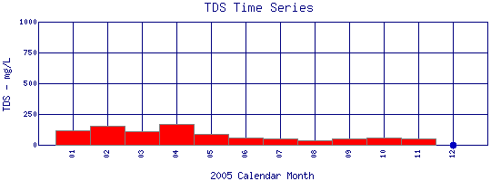 Total Dissolved Solids Time Series for 2005 Boulder Creek at Eben G. Fine Park |