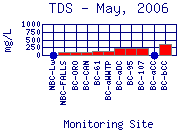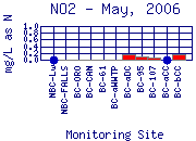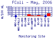 The above map indicates water quality monitoring sites. To view data at a specific site select it from the map with the mouse.