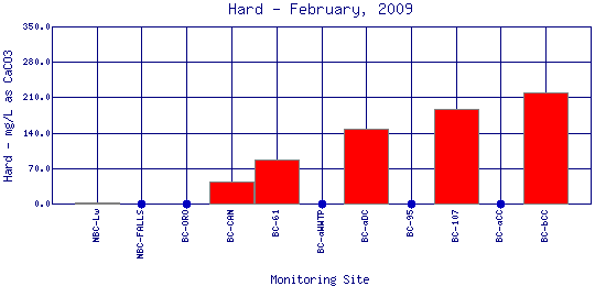 Hardness generally refers to the amount of calcium and magnesium in water. In household use, these cations (ions with a charge greater than +1) can prevent soap from sudsing and leave behind a white scum in bathtubs. In the aquatic environment, calcium and magnesium help keep fish from absorbing metals, such as lead, arsenic, and cadmium, into their bloodstream through their gills. Therefore, the harder the water, the less easy it is for toxic metals to absorb onto gills. Water in the Boulder Creek watershed is generally soft because the water comes mainly from melting snow which is low in minerals and metals.