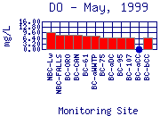The above map indicates water quality monitoring sites. To view data at a specific site select it from the map with the mouse.
