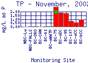 The above map indicates water quality monitoring sites. To view data at a specific site select it from the map with the mouse.