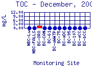The above map indicates water quality monitoring sites. To view data at a specific site select it from the map with the mouse.