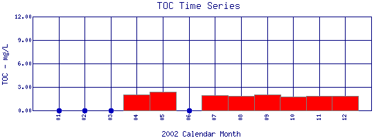 Total Organic Carbon Time Series for 2002 Boulder Creek at Orodell |