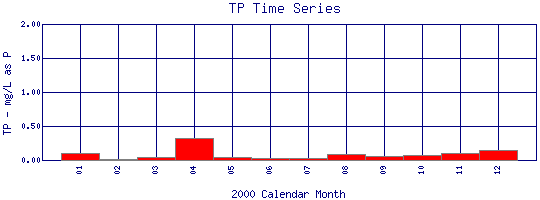 Select on the parameter name to view all Total Phosphate time series plots on the basin map. Select on the table date to view stream Total Phosphate profiles observed on that date. Select here to view all parameters at this site.