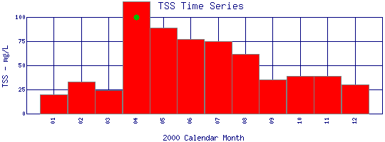 Total Suspended Solids Time Series for 2000 Coal Creek Above Boulder Creek Confluence |