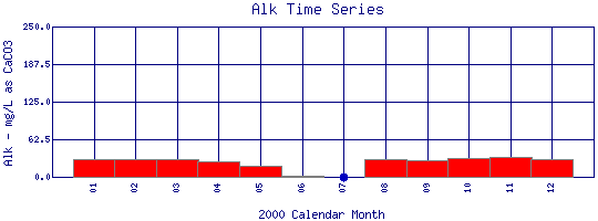 Select on the parameter name to view all Total Alkalinity time series plots on the basin map. Select on the table date to view stream Total Alkalinity profiles observed on that date. Select here to view all parameters at this site.