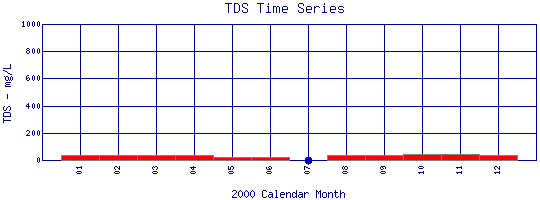 Total Dissolved Solids Time Series for 2000 Como Creek where it enters Lakewood Res. |