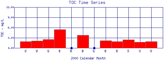 Total Organic Carbon Time Series for 2000 Como Creek where it enters Lakewood Res. |