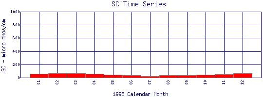 Specific Conductance Time Series for 1998 Middle Boulder Creek @ Nederland WTP |