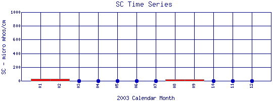 Specific Conductance Time Series for 2003 Silver Lake Pipe outfall in Lakewood Reservoir |