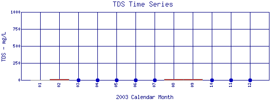 Total Dissolved Solids Time Series for 2003 Silver Lake Pipe outfall in Lakewood Reservoir |