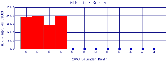 Total Alkalinity Time Series for 2003 Coal Creek Above Boulder Creek Confluence |