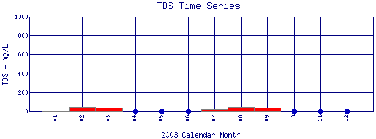 Total Dissolved Solids Time Series for 2003 Como Creek where it enters Lakewood Res. |
