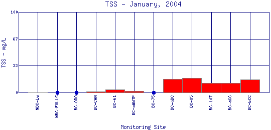 Longitudinal Total Suspended Solids Profiles for January, 2004