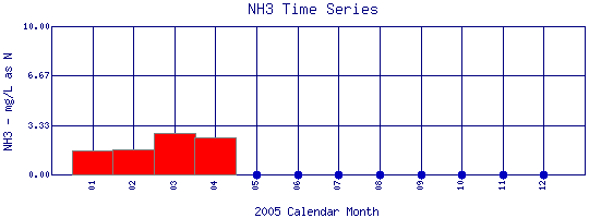 Select on the parameter name to view all Ammonia time series plots on the basin map. Select on the table date to view stream Ammonia profiles observed on that date. Select here to view all parameters at this site.