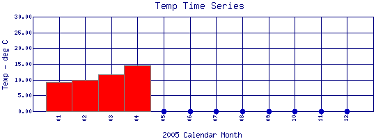 Water Temperature Time Series for 2005 Boulder Creek above Dry Creek |