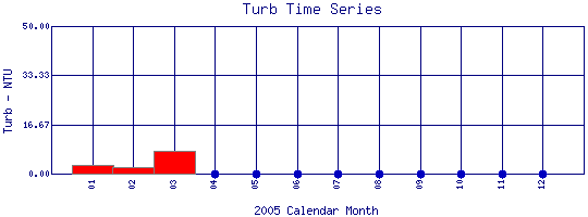 Turbidity Time Series for 2005 Boulder Creek above WW Plant |