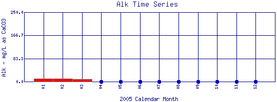Total Alkalinity Time Series for 2005 Silver Lake Pipe outfall in Lakewood Reservoir |