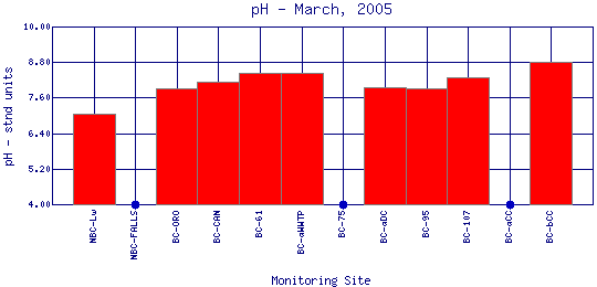 The above map indicates water quality monitoring sites. To view data at a specific site select it from the map with the mouse.
