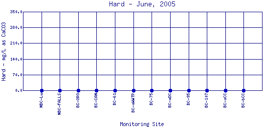 Hardness generally refers to the amount of calcium and magnesium in water. In household use, these cations (ions with a charge greater than +1) can prevent soap from sudsing and leave behind a white scum in bathtubs. In the aquatic environment, calcium and magnesium help keep fish from absorbing metals, such as lead, arsenic, and cadmium, into their bloodstream through their gills. Therefore, the harder the water, the less easy it is for toxic metals to absorb onto gills. Water in the Boulder Creek watershed is generally soft because the water comes mainly from melting snow which is low in minerals and metals.