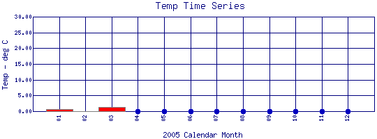 Water Temperature Time Series for 2005 Como Creek where it enters Lakewood Res. |