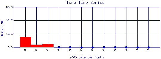 Turbidity Time Series for 2005 Como Creek where it enters Lakewood Res. |
