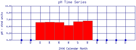pH Time Series for 2006 Boulder Creek at Orodell |